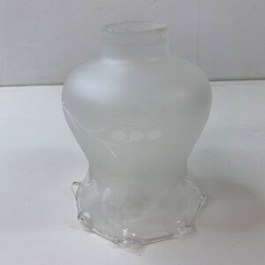 4 Vintage Frosted Glass Lamp Shades Etched Grapevine Design Ruffled Edge