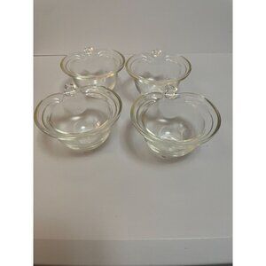 Great set of 4 small custard or dessert dishes. Air bubbles and other imperfections as noted due to age and style of craftsmanship. Otherwise, great shape!