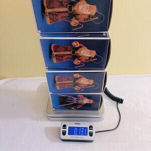 Set of 4 Kurt S Adler Vintage Paper Mache Santa Ornaments w/ Boxes. The box states they are 6". However, over time paper mache can shrink. I estimate my measurements to be on average approximately between 5" - 5.5". These are in great vintage condition! Boxes is in overall good condition. Please see pictures for additional condition reference.
