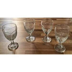 4 Vintage Libbey Chivalry Clear 8oz Water Wine Goblets Textured Glass 6.25”