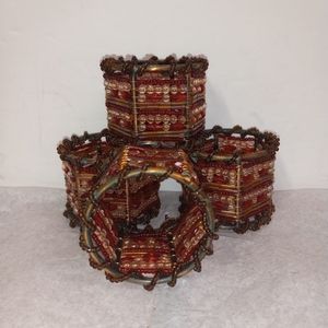 4 Vintage Napkin Rings Beaded on Copper Ruby Garnet and Clear