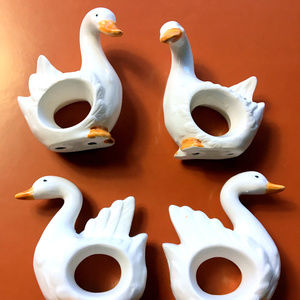 Set of 4 Vintage New Duck / Geese Napkin Ring Holders / Porcelain