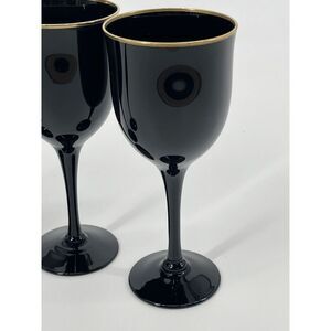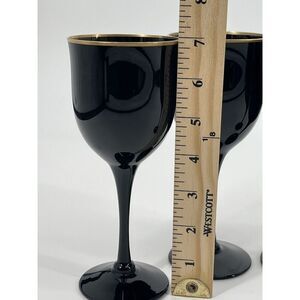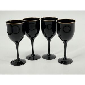4 Vintage Noritake REMEMBRANCE EBONY Wine Glasses Goblets 7” Black W/ Gold Rim