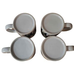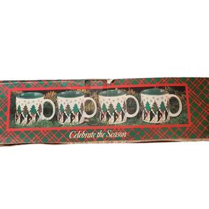 One of the mugs has a hairline crack on the handle. All others are in excellent used condition. 4 coffee/tea mugs with Christmas trees and penguins marching around the entire mug. No stains. No chips. Will come with original box, but carefully packed.