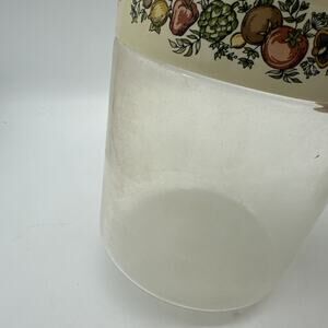 Add a touch of vintage charm to your kitchen with this set of 4 Pyrex glass canisters. The canisters feature a unique mushroom design and are perfect for storing spices, flour, sugar, and other kitchen essentials. Each canister comes with a twist-off lid, making it easy to access your ingredients while keeping them fresh. Obvious signs of wear and tear. Pretty good shape for its age.