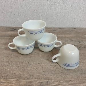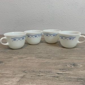 4 Vintage Pyrex Morning Blue White Blue Flowers set