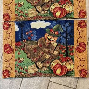 4 Vintage Scarecrow Tapestry Placemat Set Halloween Autumn