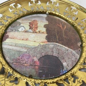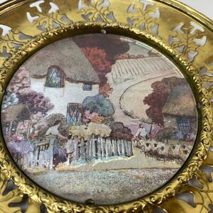 4 Vintage Solid Brass Made In England Picture Wall Hangings Foil Country Village