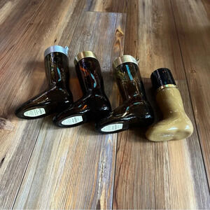 4 Vintage Style Avon Boot Cologne Brown Glass Decanters, Collectible EMPTY