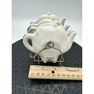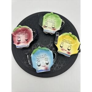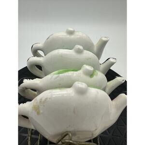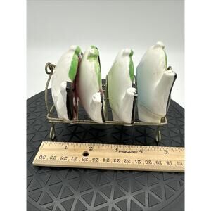 4 Vintage Tidy Tea Bag Holder Ceramic Set Napco Teapot Fruit Shape Hat W Stand