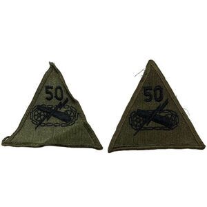 Add this vintage US Army 50th Armor Division patch set to your collection. These green patches are original and authentic from the World War II era.