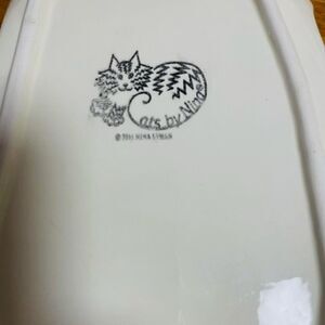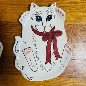 4 Vtg. 90s Cats By Nina Handpainted Plate Dish White Persian Red Bow Blue Eyes