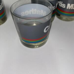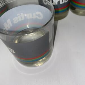 4 Vtg Curtis Mathes Promotional Advertising Rocks Glasses Gray & Rainbow Stripe