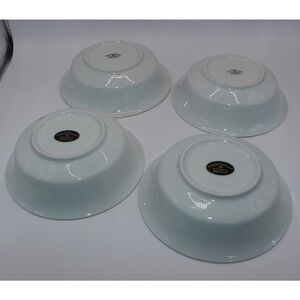 This item is a set of 4 Vintage Dessert/Fruit/Berry in the Johann Haviland Bavaria Germany in the Sweetheart Rose pattern. All four are in very good condition with no chips or cracks. 2 of these bowls have a black sticker on the bottom as a maker's mark.