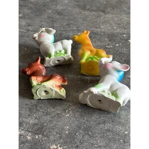 4 Vtg Squeaky Animal Toys Giraffe, Horse, Lamb and Elephant Trunk Up Rubber Toys