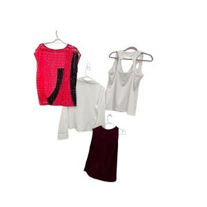 3. **Top Right:**( Boston proper) A white sleeveless tank top with a racerback design. It has a simple and plain appearance. Shape wear