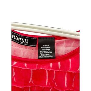 1. **Top Left:** ( Elementz) A short-sleeved shirt with a textured, crinkled fabric. It features a bold design with a large butterfly in black and white, set against a red and black background in a diagonal pattern.