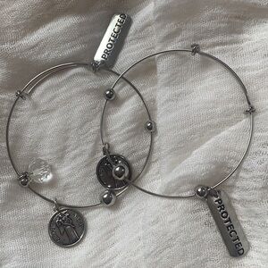 Silver guardian angel - one has the angel charm and the charm that says “protected” The other silver one also has the same angel charm and protected charm, but this one also has the clear bead on it. Keep them all or give them to your friends! Includes all 4 bracelets.