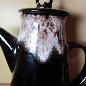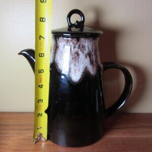 4+ cups vintage drip paint teapot princess (W4453) - bottom says: Royal Canadian Art Pottery - The Princess instant coffee pot or teapot - do not place on hot stove - Hamilton, Ont Canada