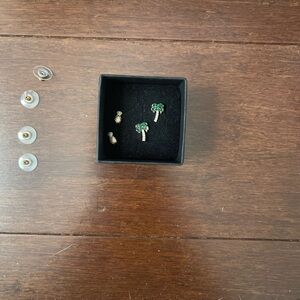 this listing is for the set: two pairs: one set of crystal palm tree earrings and one set of pineapple earrings. Great for vacation and summer.