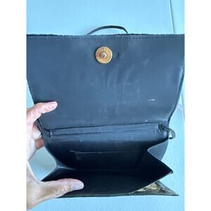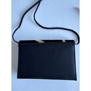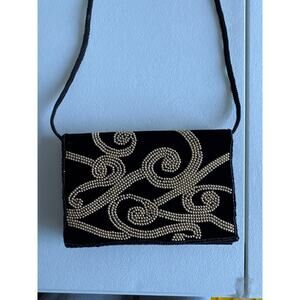 This is a beautiful black and gold fabric evening clutch that can also be worn as a crossbody. It is in excellent used condition (EUC) and ready for a night out!