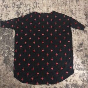 S269: LuLaRoe Irma Size Medium Black with pink flamingos Pit to pit approximately 26” Length approximately 33”