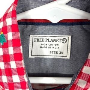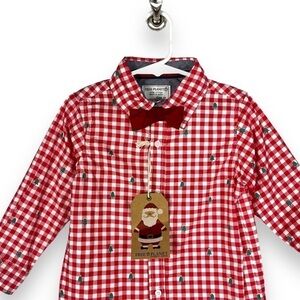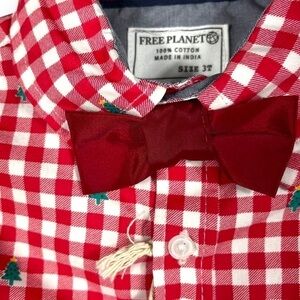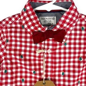 4 for $20 SALE! Free Planet Gingham Holiday Shirt w/Bow Tie, Red/White/Trees, 3T