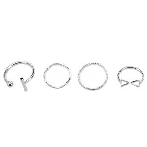 4 rings in this cute Geometric bar set. Silver *4 for $20 promo eligible*