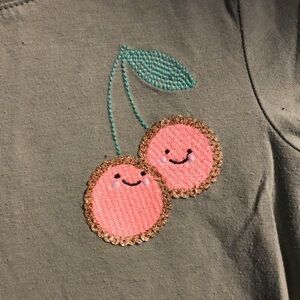 Green Shirt that ties at bottom; cherry decal