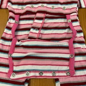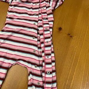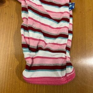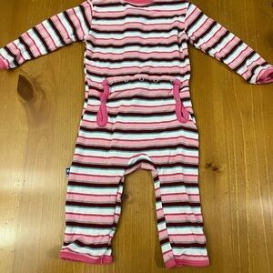 Kickee Pants playsuit in good condition for normal wash wear and piling on the fabric. Snaps look great. Color print is Anniversary Bobsled Stripe.