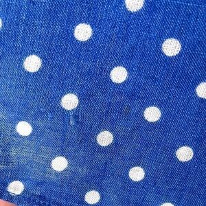 Classic button up shirt in bright blue with white polka dots.  Buttoned cuffs.