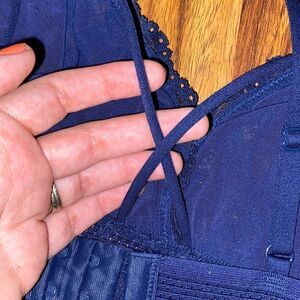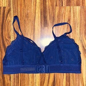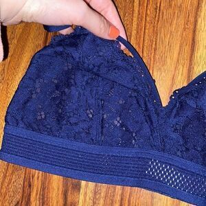 Excellent condition lace bralette. Maybe worn once! Lovely navy color, hooks in the back. No padding, very comfortable.
