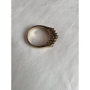 Engagement style ring with single cz stone in the center stamped 18KGE