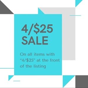 4 items for $25 on anything with “4/$25” in the listing title