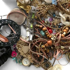 4 lb. + Vintage Craft Junk Drawer Broken Jewelry Lot for jewelry making, upcycling, diy jewelry, arts and crafts, etc..