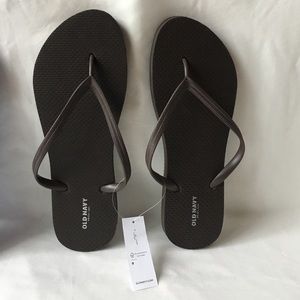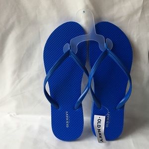 Brand new old navy sandals. 1 blue pair, 1 Navy blue pair, 1 brown pair and 2 black pairs. never been worn.
