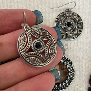 4 pair lot bundle nice quality dangle drop deep red elegant silver oval hoop