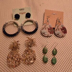 4 pairs of fun earrings, variety of designs & color, year round styles. Dress up or down for everyday wear