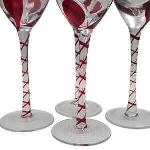 4 pc Pier 1 Red Swirl Line Swirline Stem Wine Glasses 9" high Party Gift