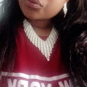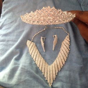 Sterling silver crown, snap on ear rings & choker necklace to give you the perfect princess look. (Diamonds sparkle brightly in sunlight). Worn once for prom 2015 & it's still in great condition.