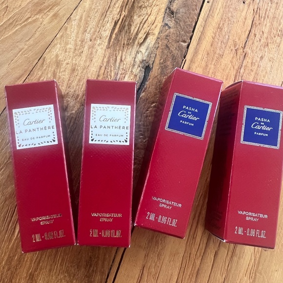 4 total samples. 2 ml/0.06 fl oz each. Brand new in box directly from Cartier when I purchased jewelry. Thanks for looking!