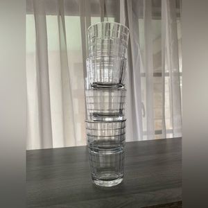 Heavy juice glasses. Ribbed inside to create the optic look.