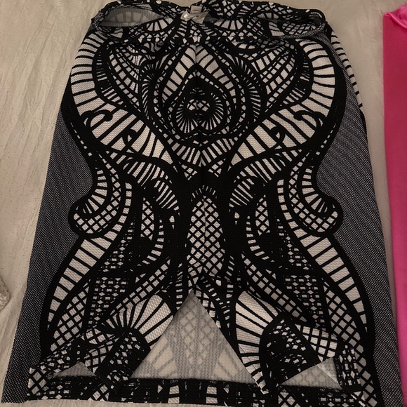 Hot pink pencil skirt (elastic waist), black and cream/white pencil skirt, cream (elastic waist) & black pencil skirt (elastic waist), Navy pencil skirt w/zipper can wear front or back.