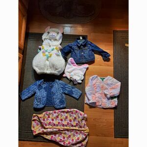 Adorable GAP soft puff faux denim jacket & real Denim jacket plus little pink puffer NWT for kids - plus cap with mittens NWT- Super Cute Llama jacket too.