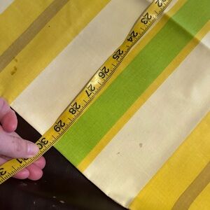 Green, yellow, white and tan striped pillow cases. J.P. Steven’s. Small stains on each, but nothing horrible. 2 cases have small tears as shown in pics. Otherwise they are ironed with great color. Standard size.