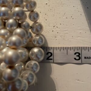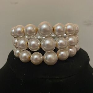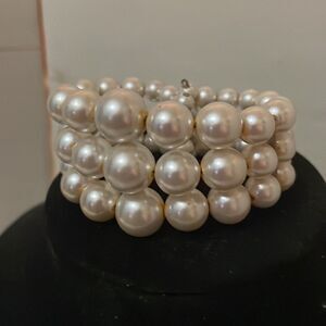 4” x 1.5” 3-row lustrous white simulated pearl angled cuff bracelet