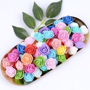 The frame is a white wood painted picture frame that fits a 4” x 6” picture. The real touch multi colored rosebuds have been adhered to the frame. There are approximately 14 rosebuds.