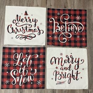 4 x Christmas Pillow Cover Merry Christmas, Believe, Let It Snow, Merry & Bright