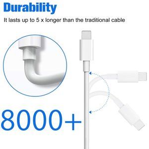 White 3 ft Cable - Fast Charge, Flexible, Heavy Duty, High Quality, Data Sync, iPhone Charger, iPad Charger, iPad Charging Cord, iPhone Charging Cord, USB Charger
