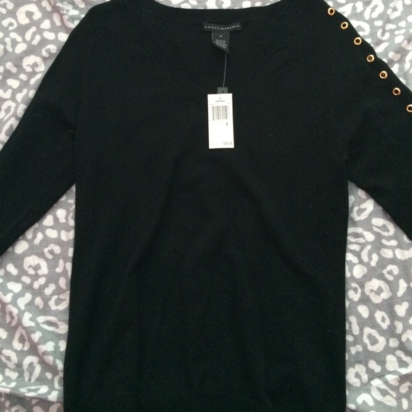 Size; M never been worn, Grace Elements black V neck sweater with gold designs down both sleeves